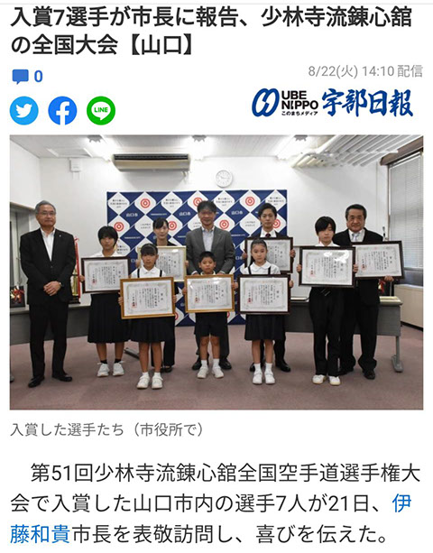 一般社団法人 全日本少林寺流空手道連盟 錬心舘 山口県地区本部