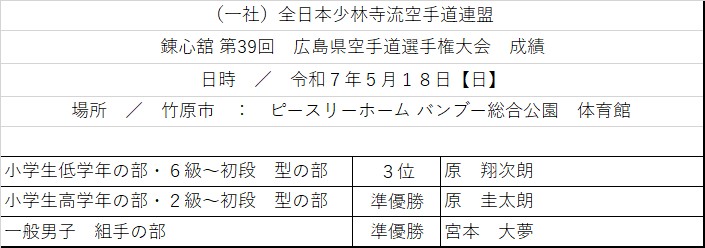 第39回 広島県空手道選手権大会 成績